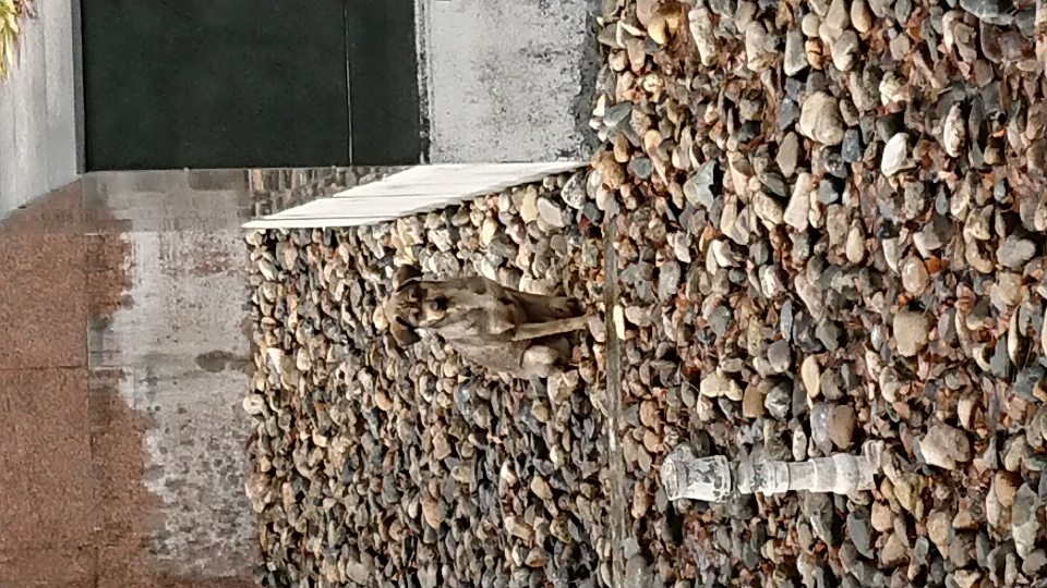 天鹤斜对面的广场,有只狗狗出不来
