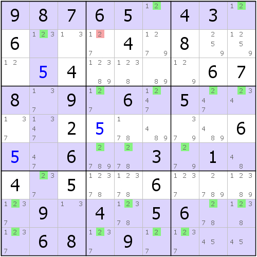 如盘面所示。剩余结构必然矛盾。因为结构剩下两处摩天楼,都能造成删数,并导致剩下结构的定义域区域数多于删除域区域数的矛盾。比如其中一处摩天楼为
