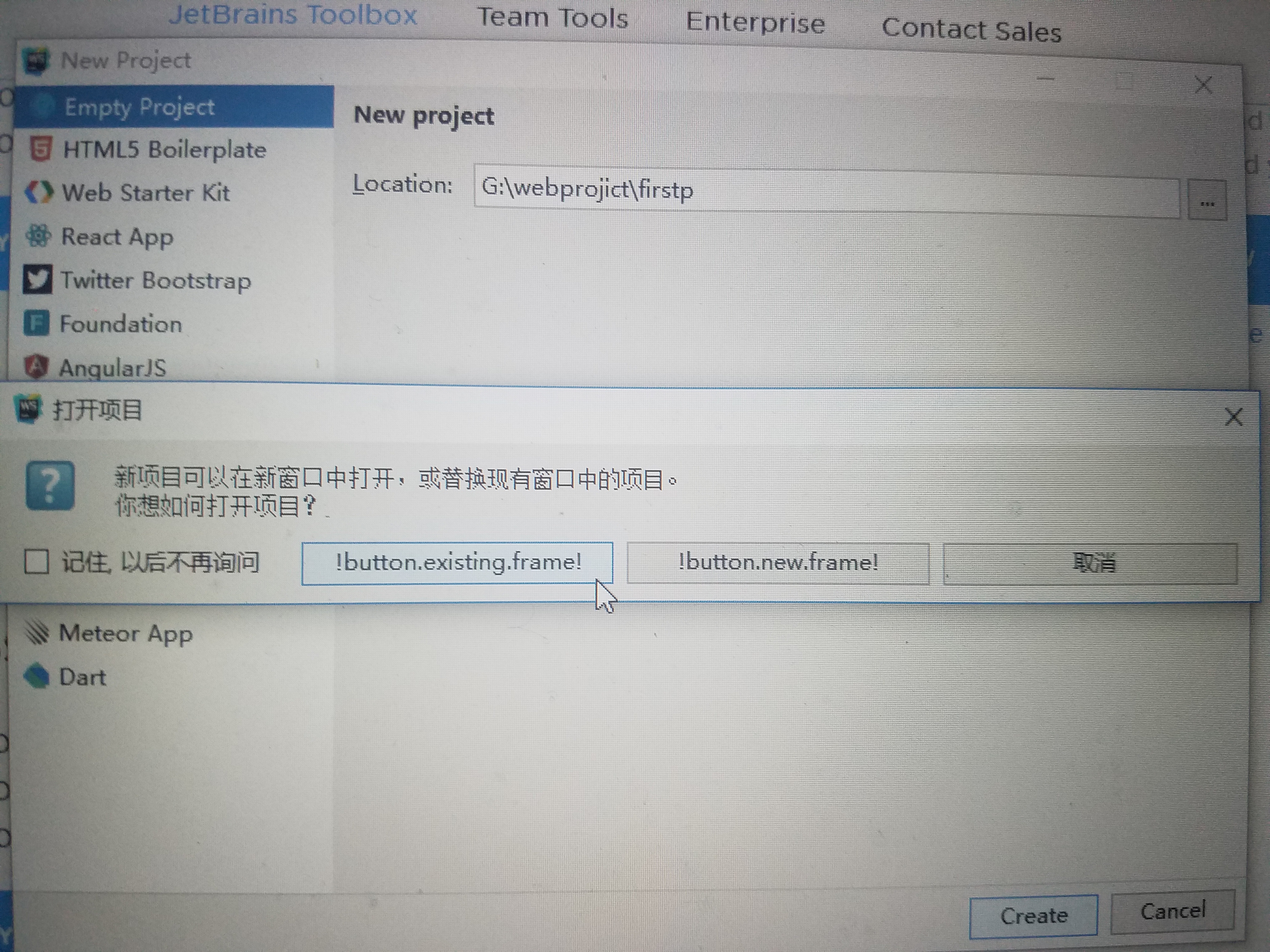一直无法新建空项目……提示打开项目之后就没有反应了,怎么点都没用