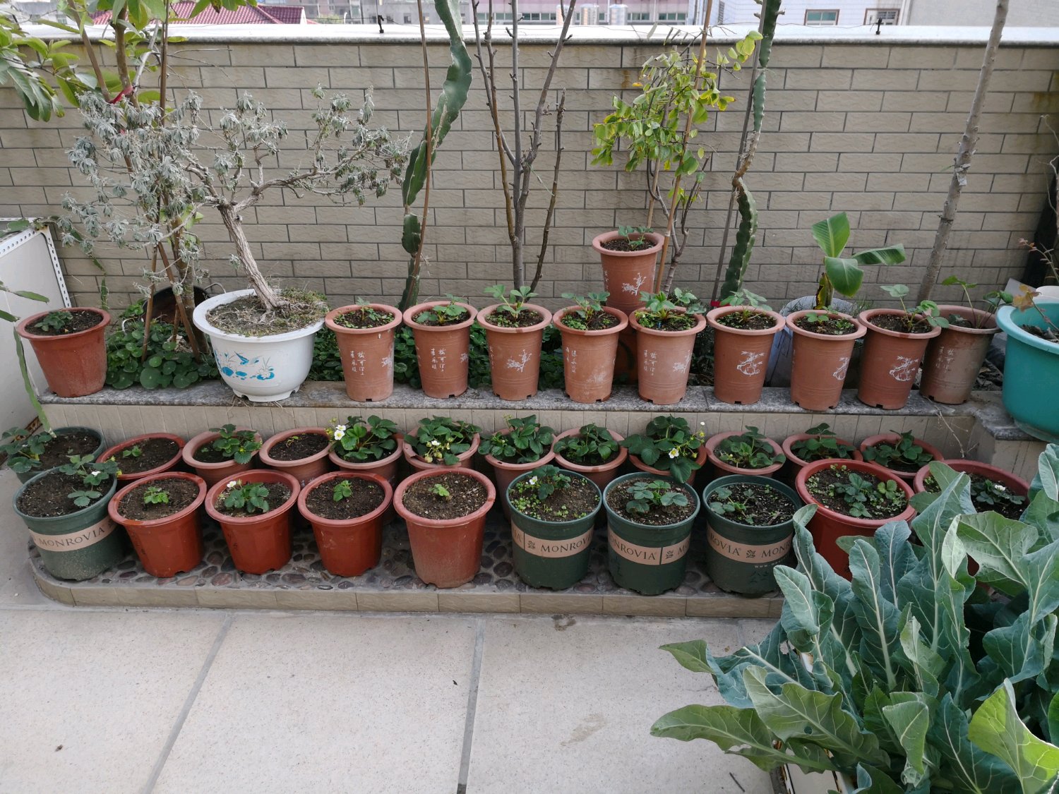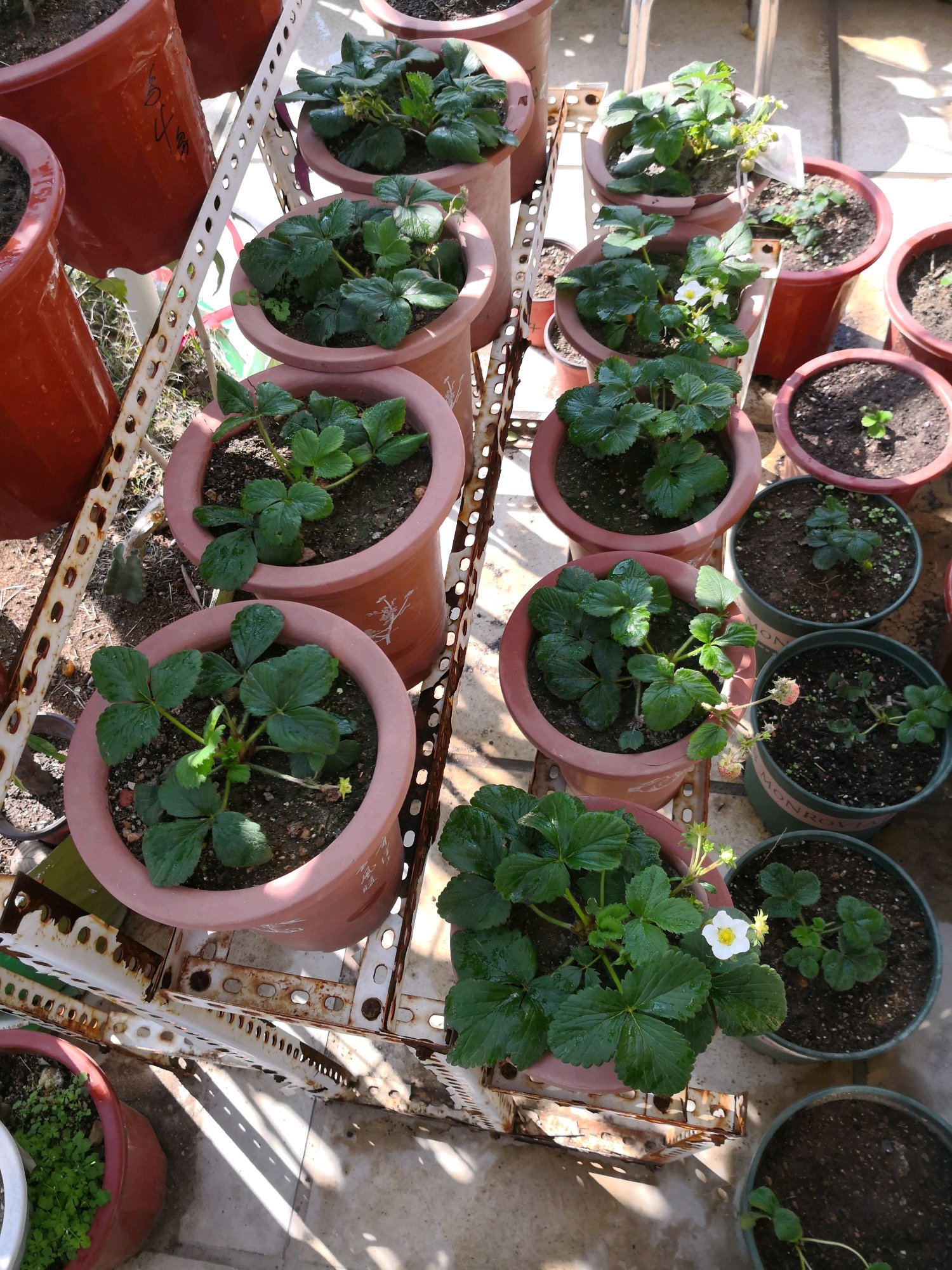 整理地盘。把草莓暂时移一边。来一张合照。放不下。还有一些在别的地方