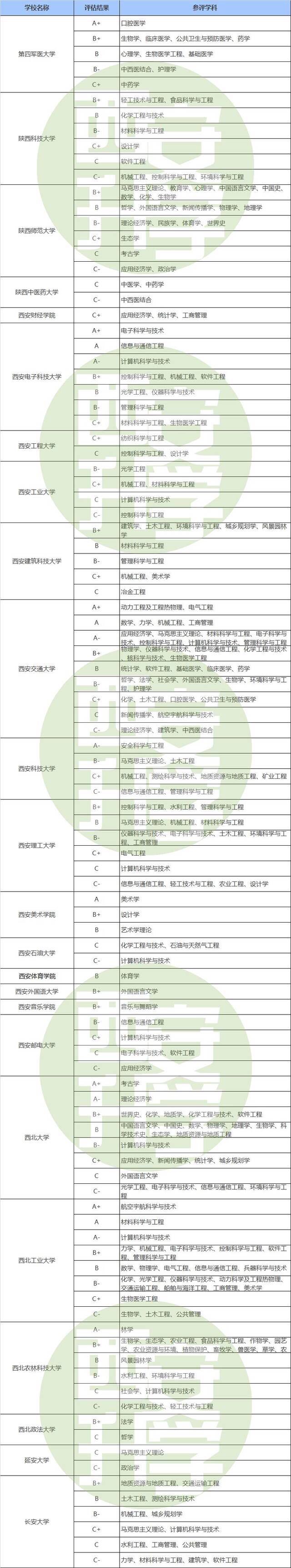 教育部第四轮学科评估之西安高校
