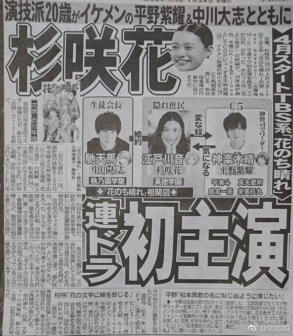 以花男十年后为背景的TBS春火十 杉咲花主演 平野紫耀演道明寺后继者(二代?)