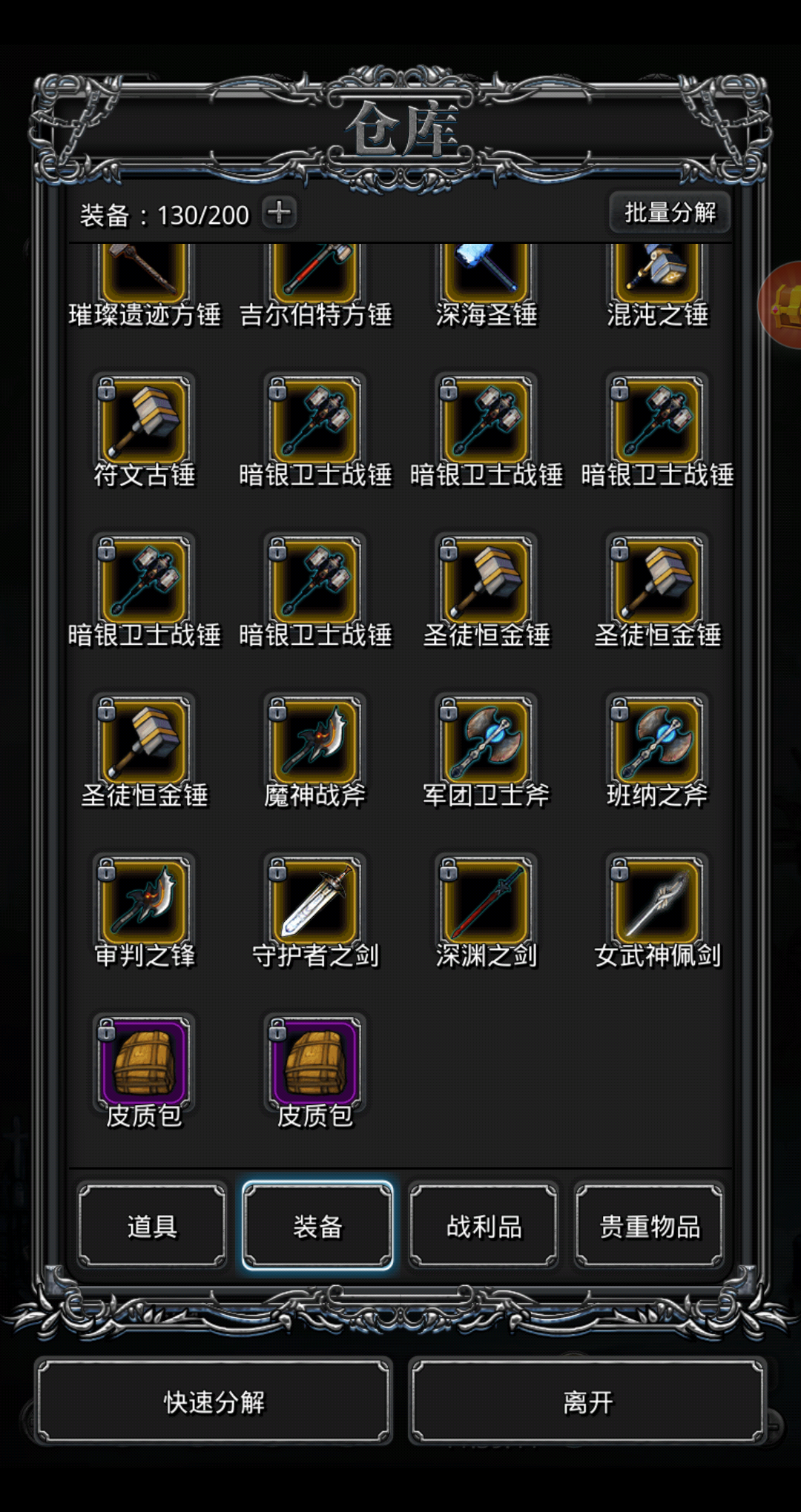 @pcchy520 留着也用不上啊,都分解了弄点铁升锻造美滋滋,反正现在主要就用裂隙,迷雾岛,遗迹装备了,五大本的基本也就要几个盾撑下冒险队评分了