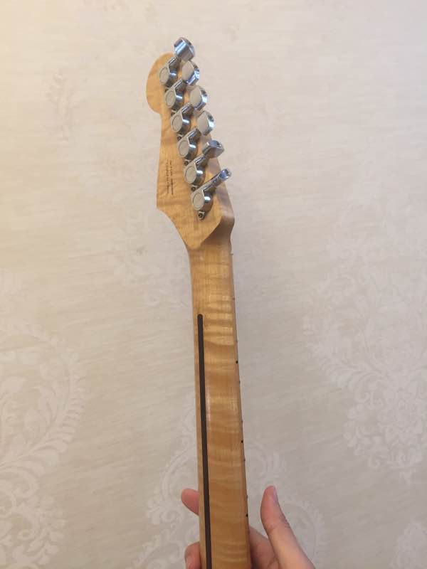自己的第一把电吉他,2009年购入,陪着我走过了研究生三年,现在有美标了,也没忘了它。这把琴被我各种折腾,各种拆,还被室友从椅子上碰到地上过,两次演出都淋过雨,但是现在依旧还能工作,下面说一下都做了哪些改造。首先原装冰花护板依旧黄的一比,换了中芬三单拾音器以及普通护板,由于原装电路严重老化,所以更换了全部电路,最后是更换了琴桥,还有压弦钉,改到完毕,好好珍藏。PS琴颈是虎纹的