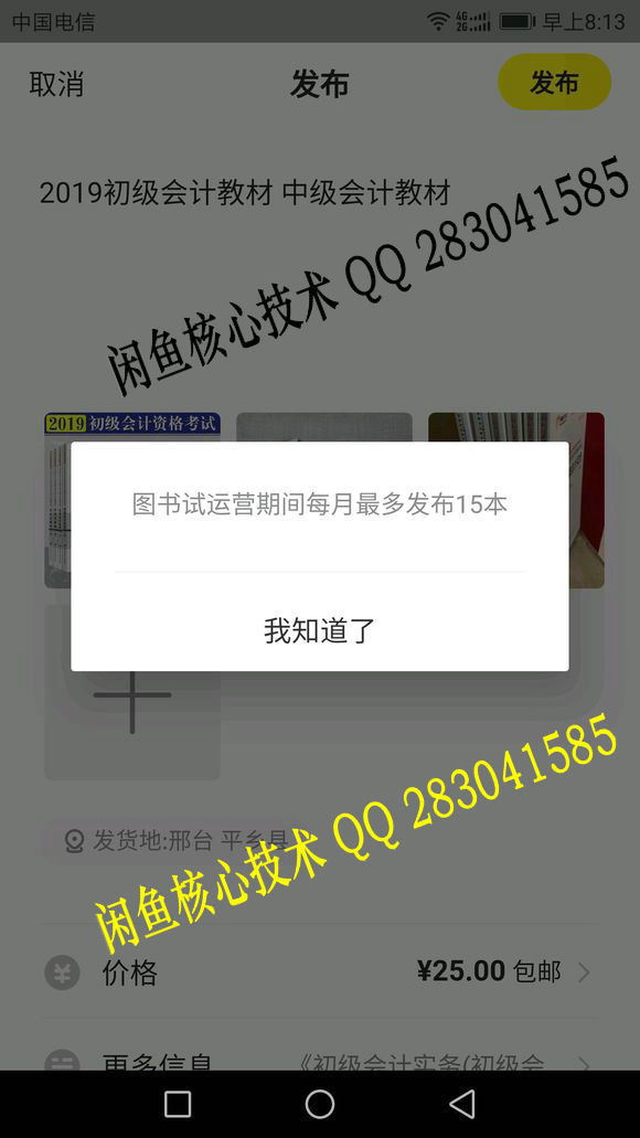 可能是发布时没有经过书籍的类目,但是一旦被闲鱼查处会作违规处理,比如限制发布啊,限制回复啊。