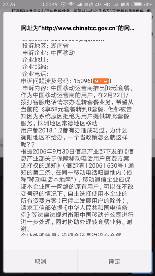 2018中国移动飞享8元套餐成功更改