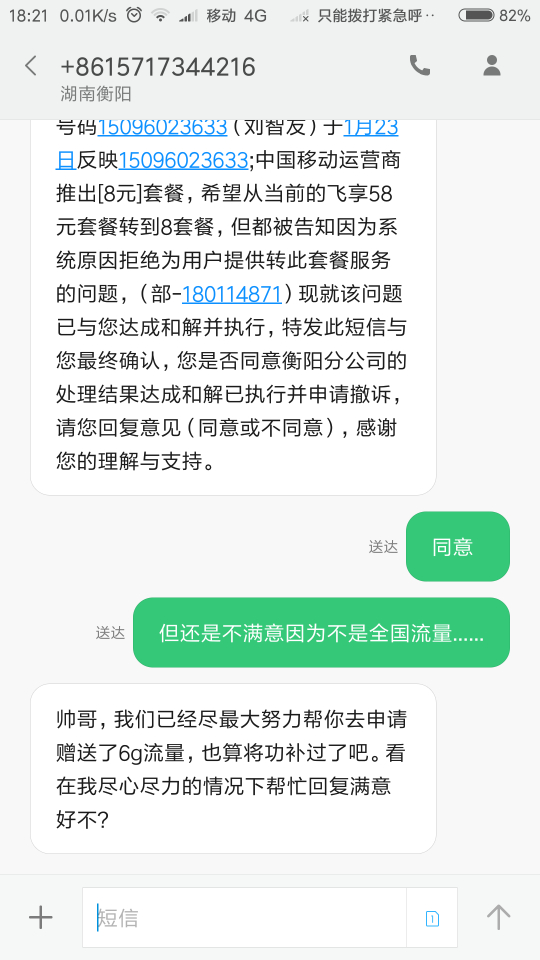 3.二天内10086有人来电说要问领导问你那里有成功的用户你直接说我衡阳和株洲还有常德客户弄成了…而且前面余下流量给你,不然继续工信部见,我们花钱买的你凭什么不还我…