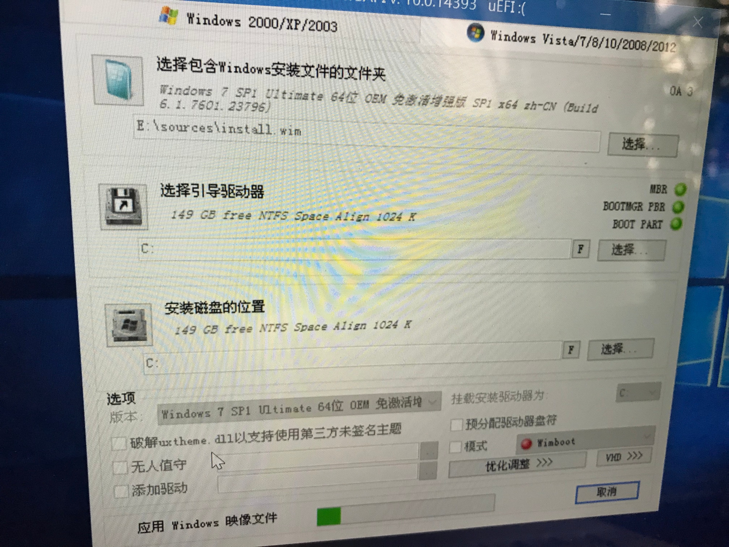 镜像部署完毕重启的时候记得把优盘拔了,不然在插着优盘的情况下,进系统会先从UEFI分区的系统开始,也就是PE。