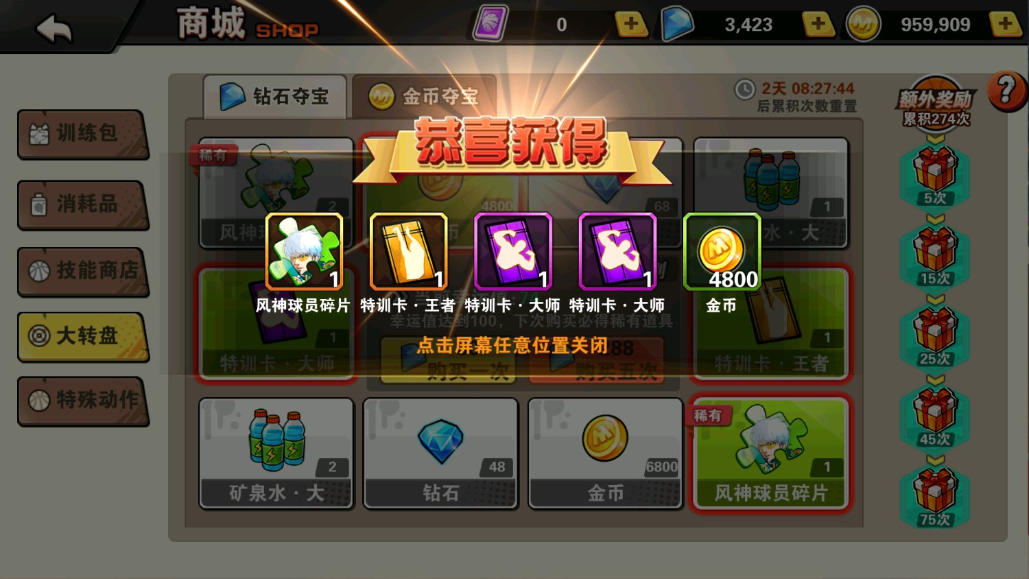 资源够就秒到50s了,训练营金币不够了。钻石不够退役仙道跟重置训练营了