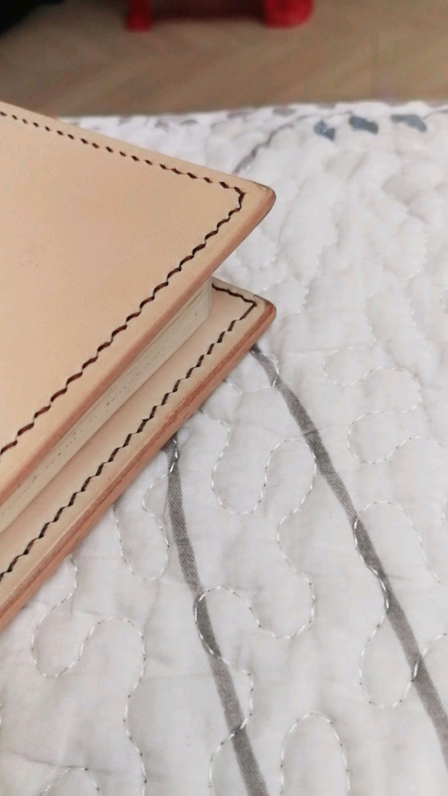 不算下面那个渣渣的刀套,这个小本子其实是第一件完成的作品。每天带在身上的小本子散架了,时间太久。