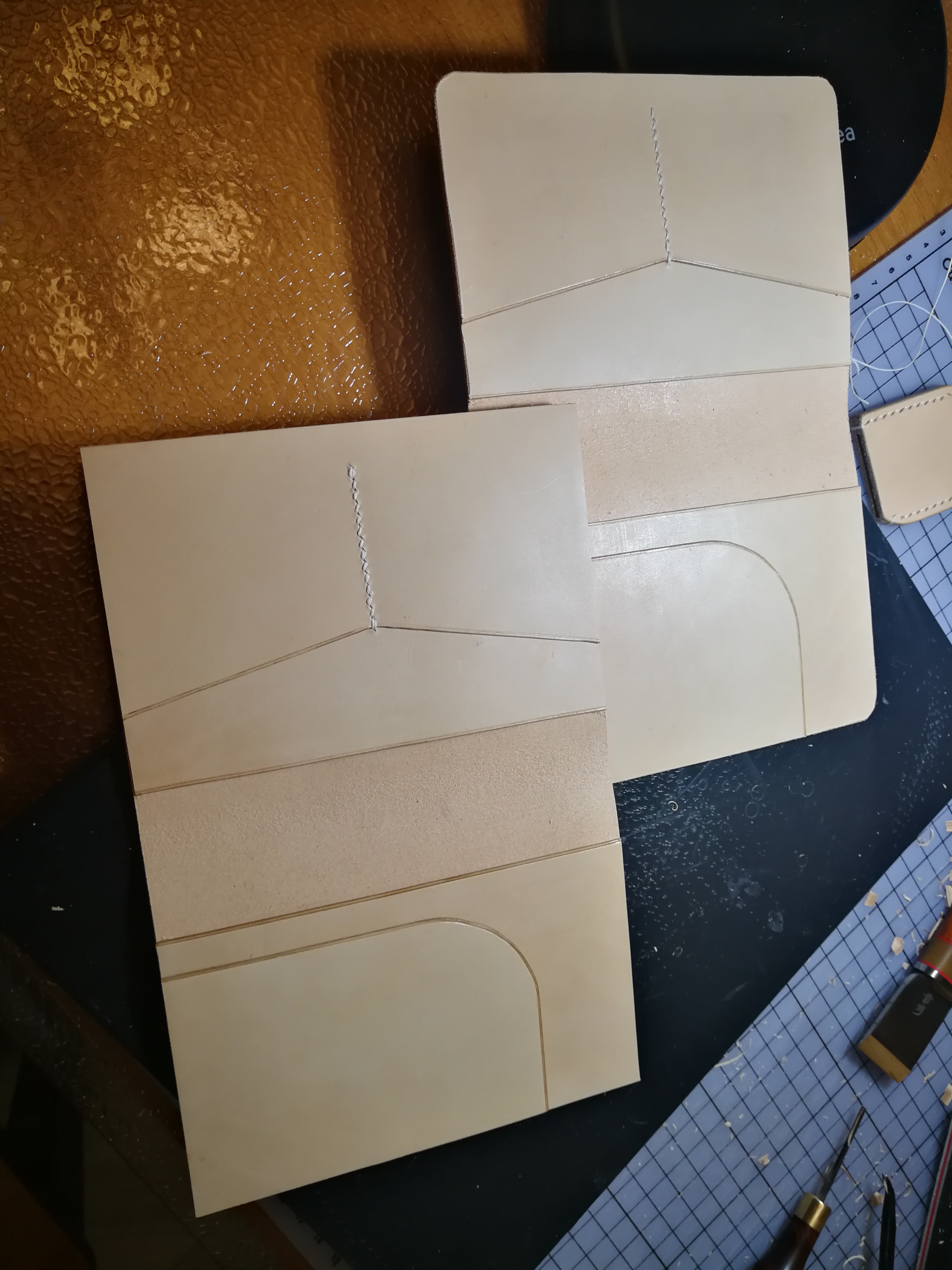然后就是这个了,找了个图,直接开始。没买透明贴,夹层的皮料有点薄。学了一阵双波浪,有点意思了。
