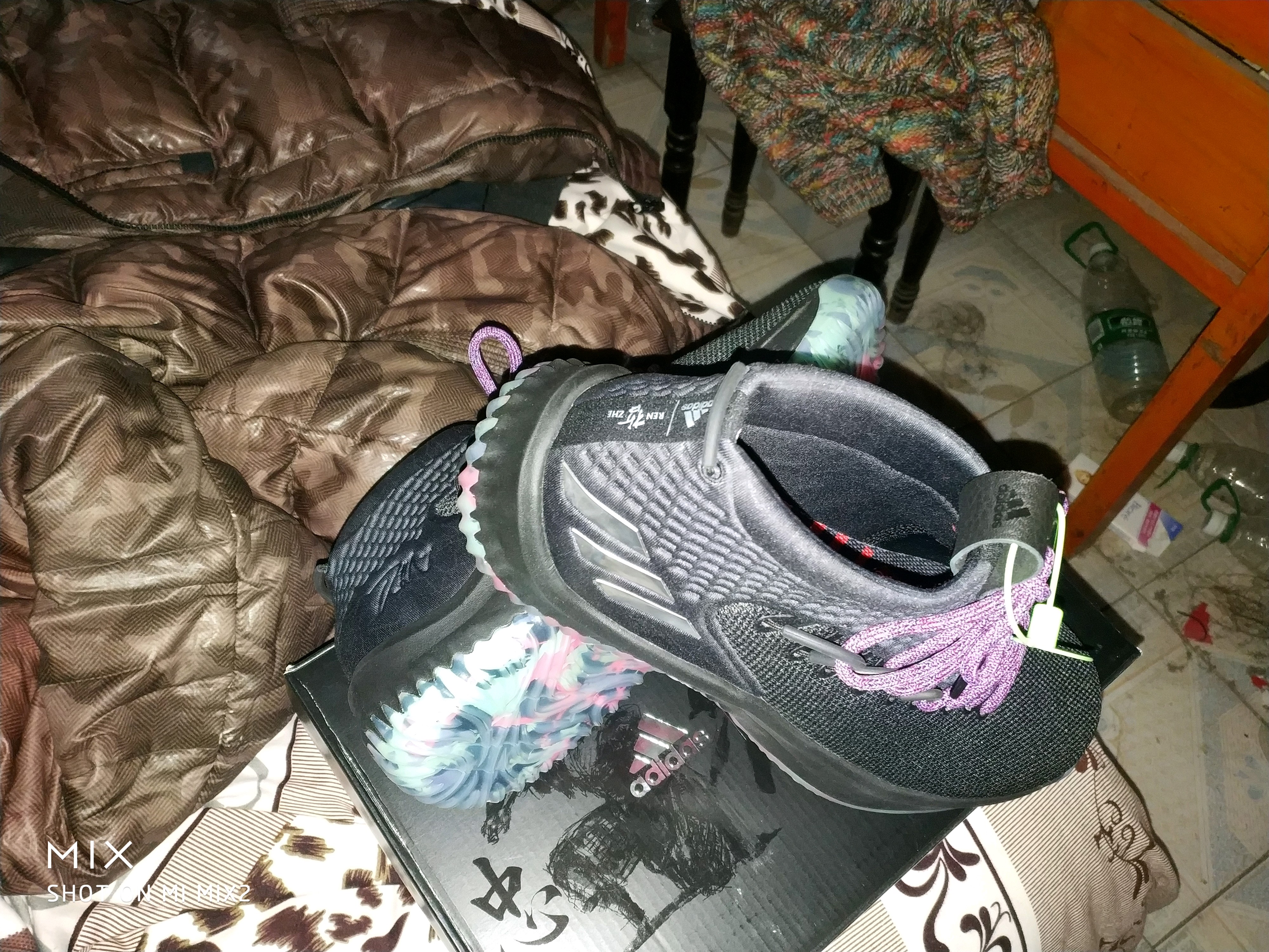 晚上光线不好,下次再拍美图,大家伙先将就看一波,顺便问一下,这鞋怎么好穿点,脚踝顶断了才穿进去一只