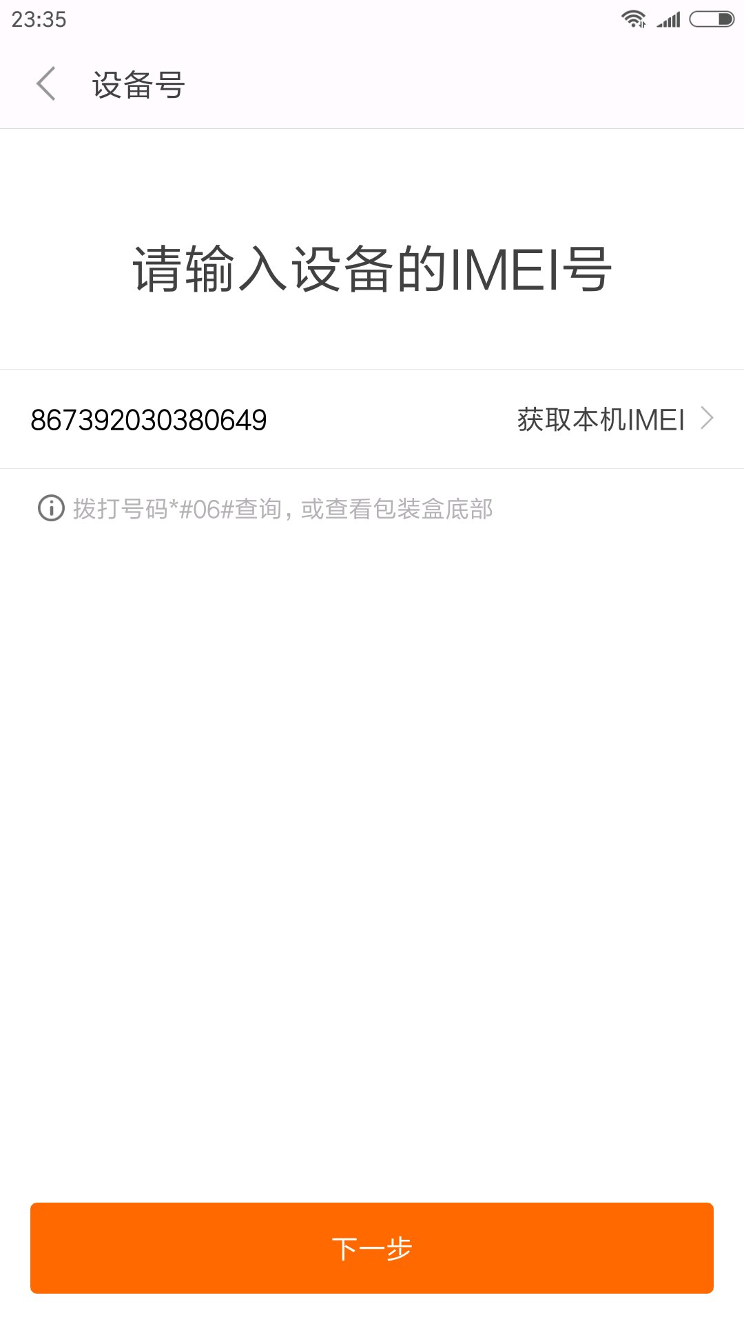 你应该是直接点边上的获取imei码吧...
