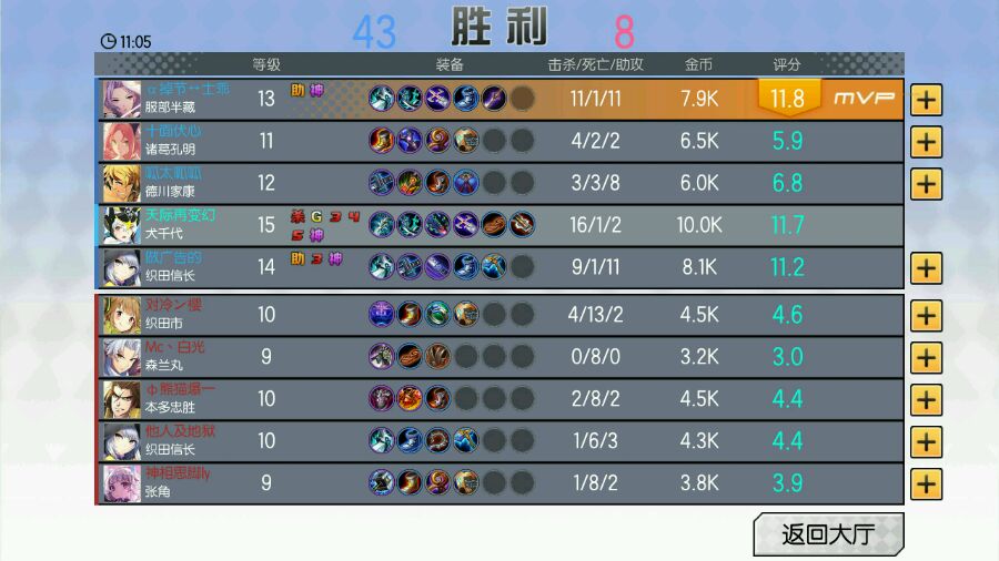 数来已经有4次了,赵云2次,然后信长一次,最有趣的是我千代也5杀了