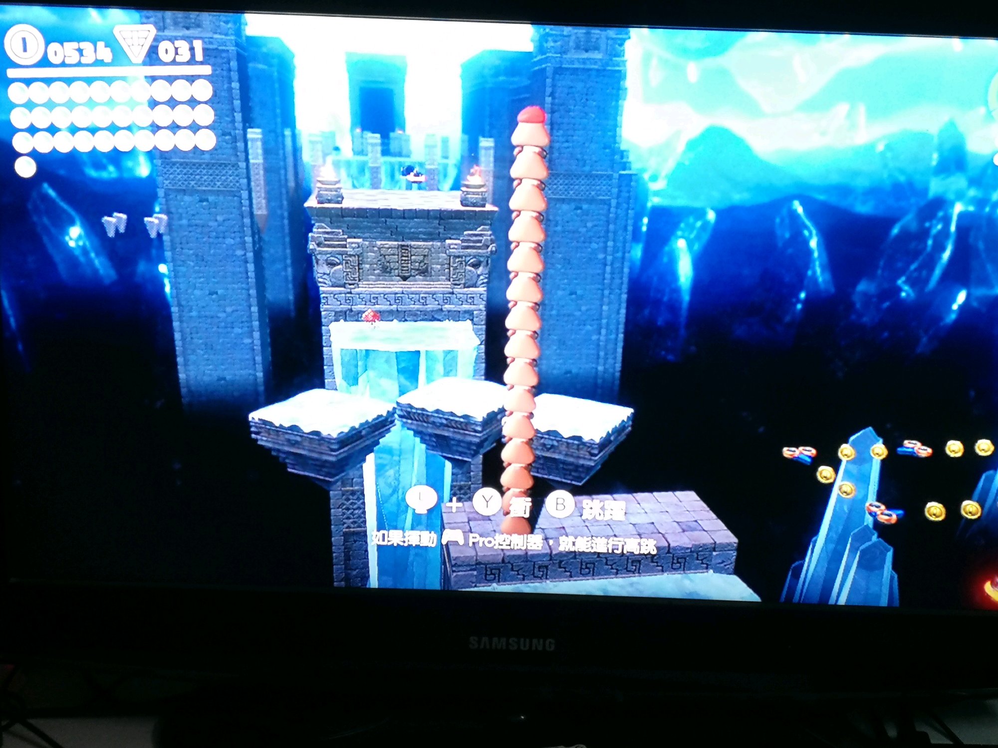 是的 一开始我也是纠结半天 后来发现了别的位置才对 中间那里要是能跳上去有一堆金币。 我试了好久都不行。。。