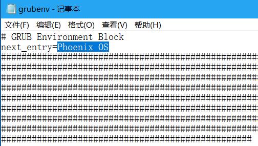 4、获取grubenv的管理员权限并使用记事本打开,修改Phoenix os为Windows后一定要保存再退出