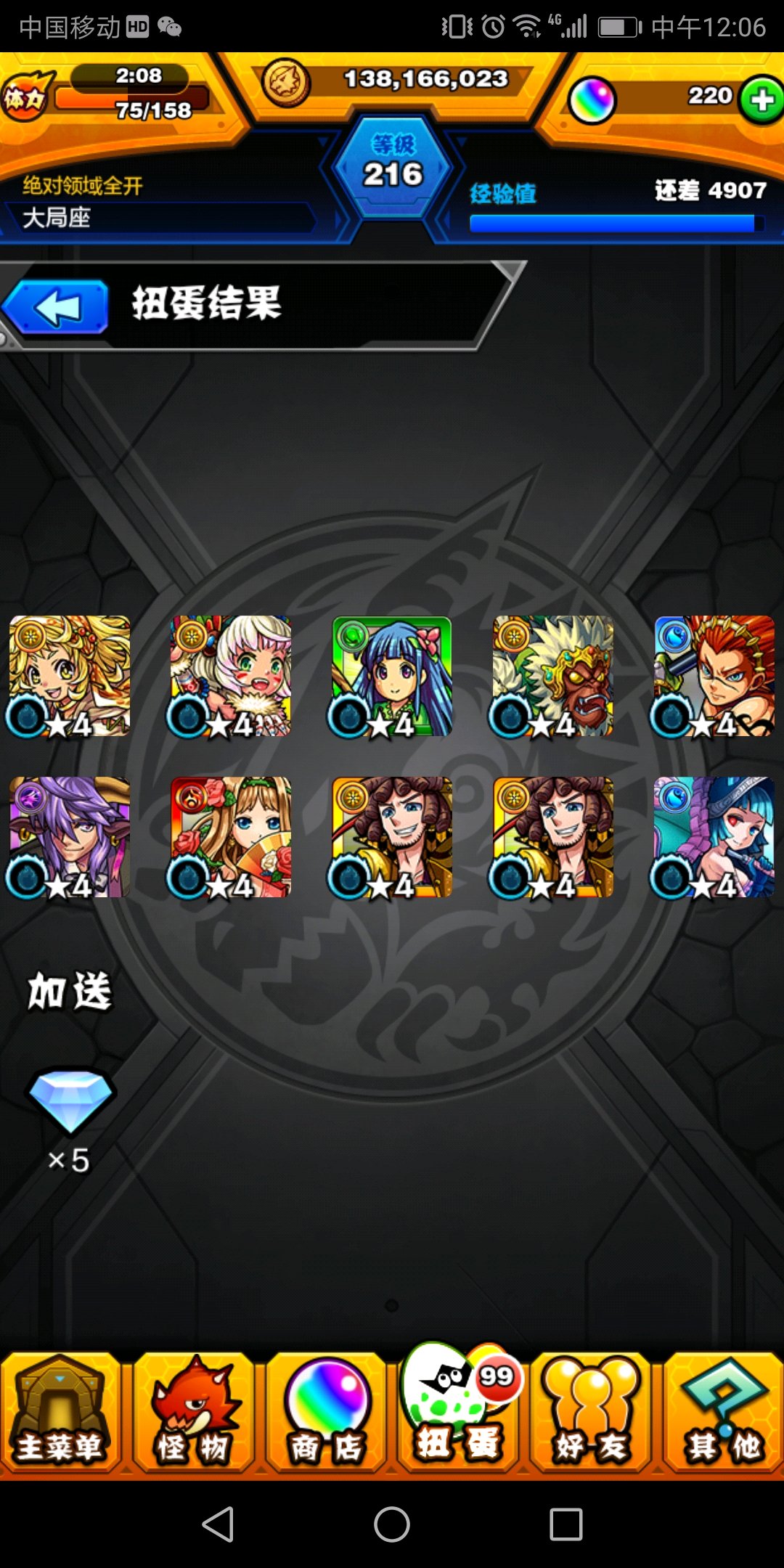 默默的算了一下,连续30抽没有五星的概率是2%。所以如果怪物弹珠扭蛋是纯随机的话,这种小概率事情就会一直遇到…所以日服有保底非洲玉。