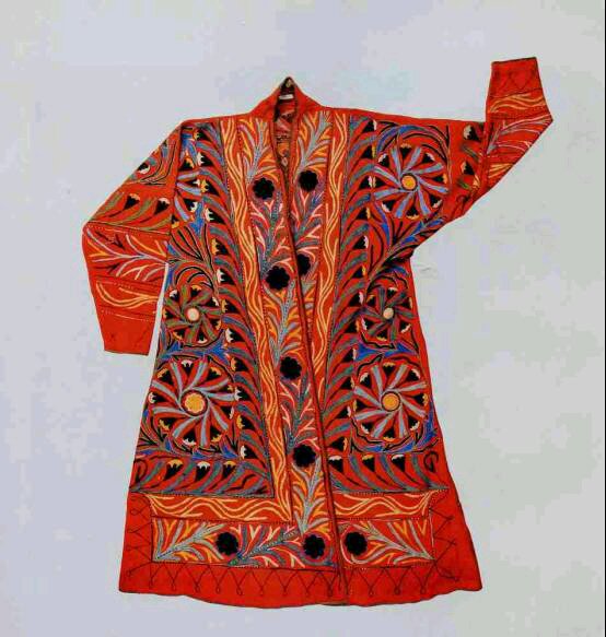 清代维吾尔毛织女恰袢和刺绣花精美女恰袢