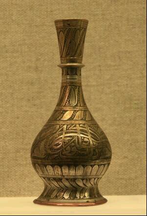 精美的铜制水壶,水瓶,铜盘,烛台,剑鞘等手工艺制品。