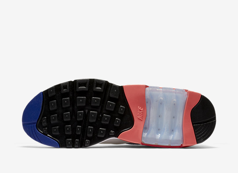 将 Nike 标志性的可见式气垫容量扩充,并镶嵌于后掌之中,使鞋子的缓震系统可以与地面直接接触,缓震更为明显,造型也更具视觉冲击。