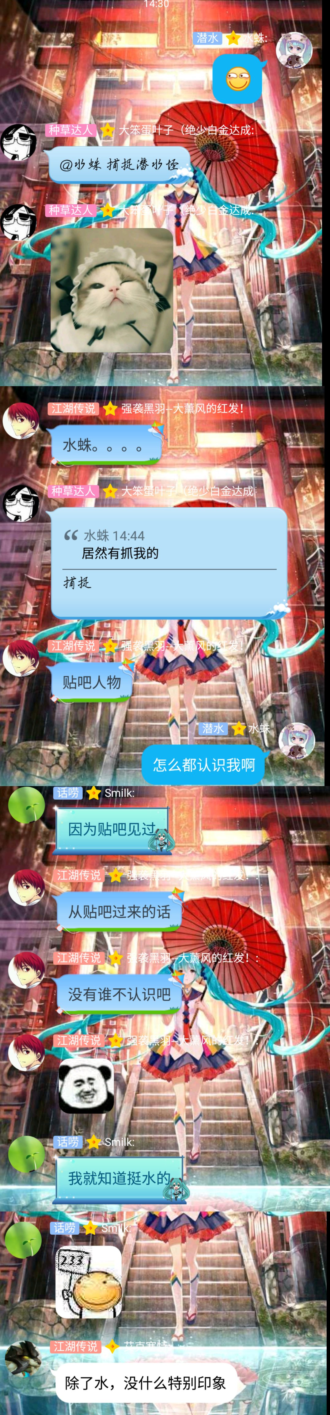 --怎么又是你啊?才不告诉你人家是初音**粉呢(>_<)第一条,请叫我水蛛哦≡[。。]≡第二条,要好好把我的回复从头看到脚。 第三条,我回复你一句你要回复我三句哦 明白的话 那么,来成为我的经验吧