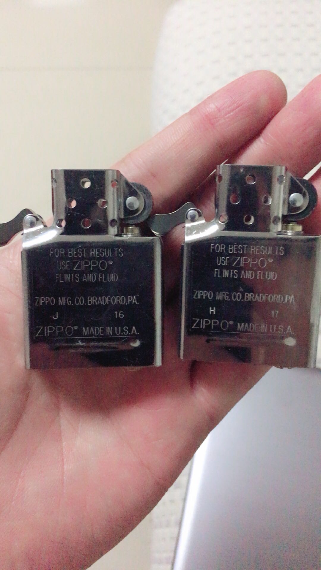 最近突然喜欢起zippo了,入手2只帮忙看下可以烧么。207感觉怪怪的..很轻,而且两个机器壳和内胆貌似时间都不一样的.这都是拼的么。