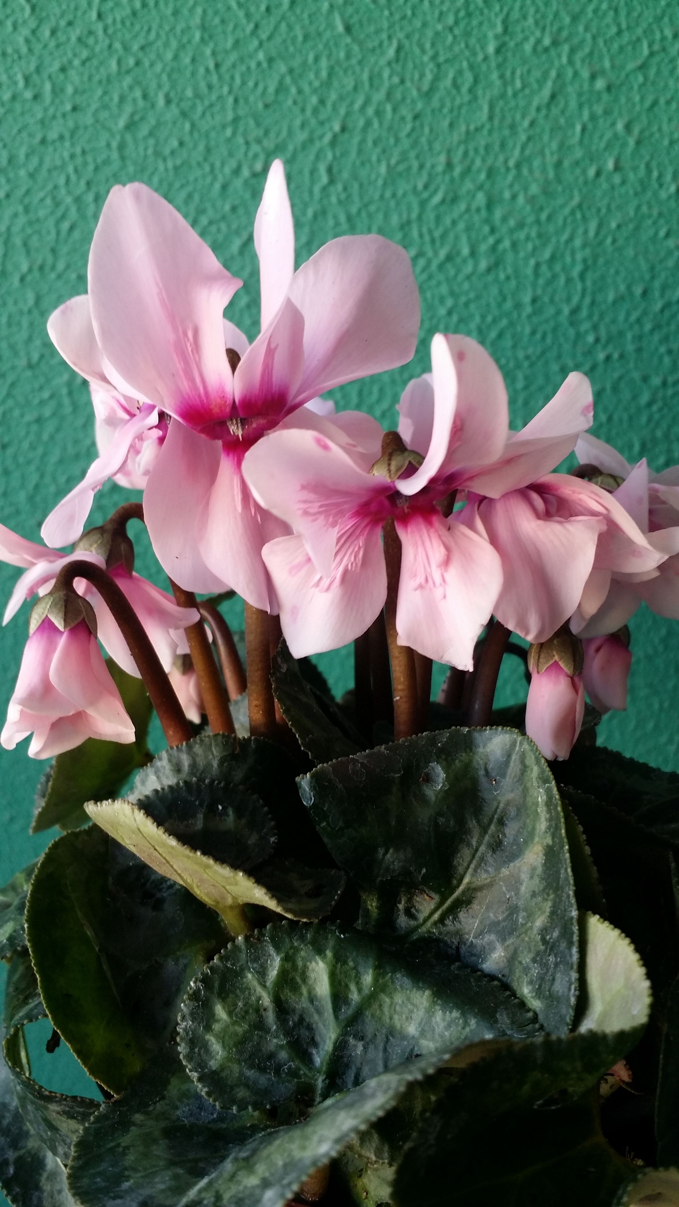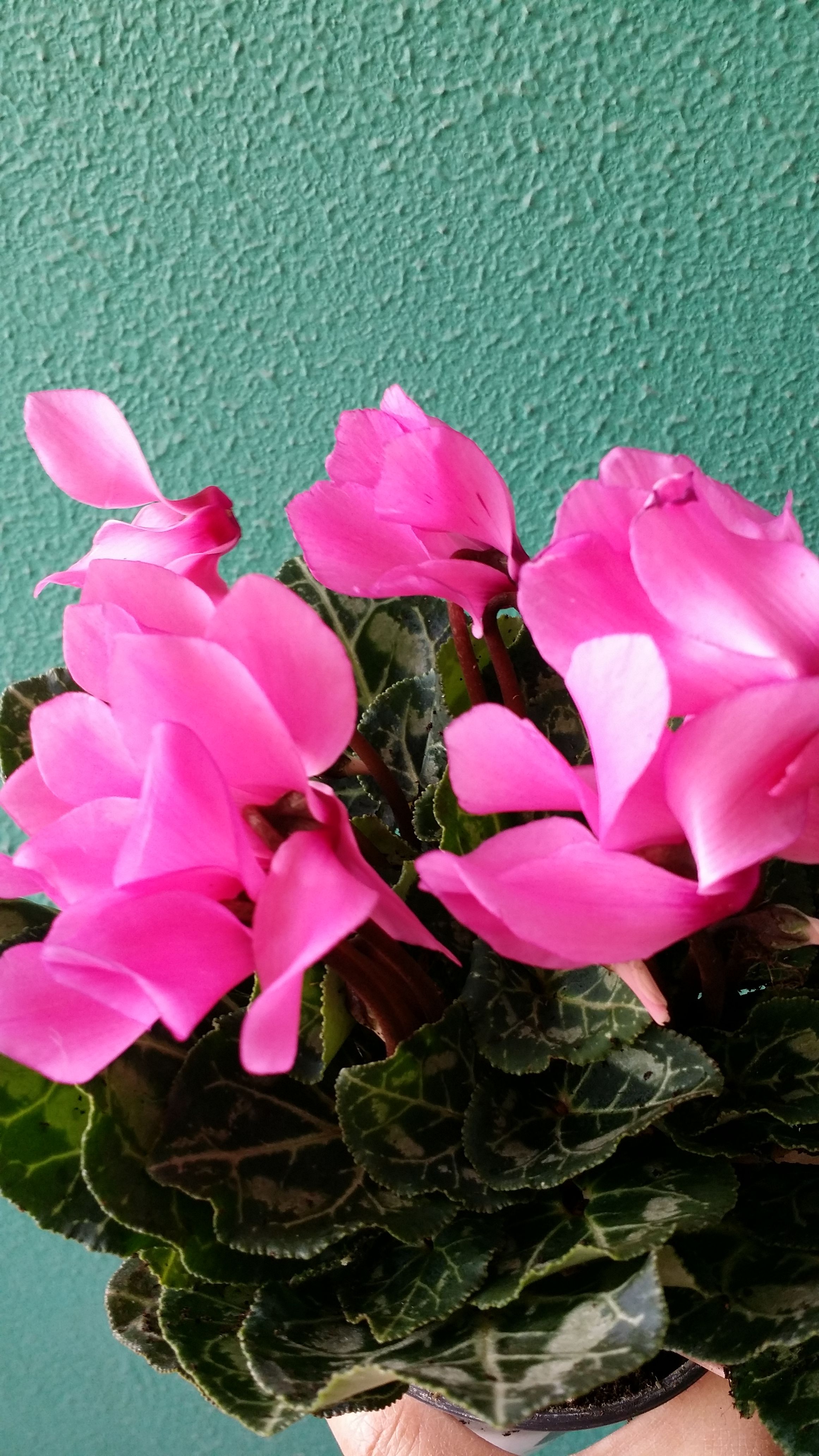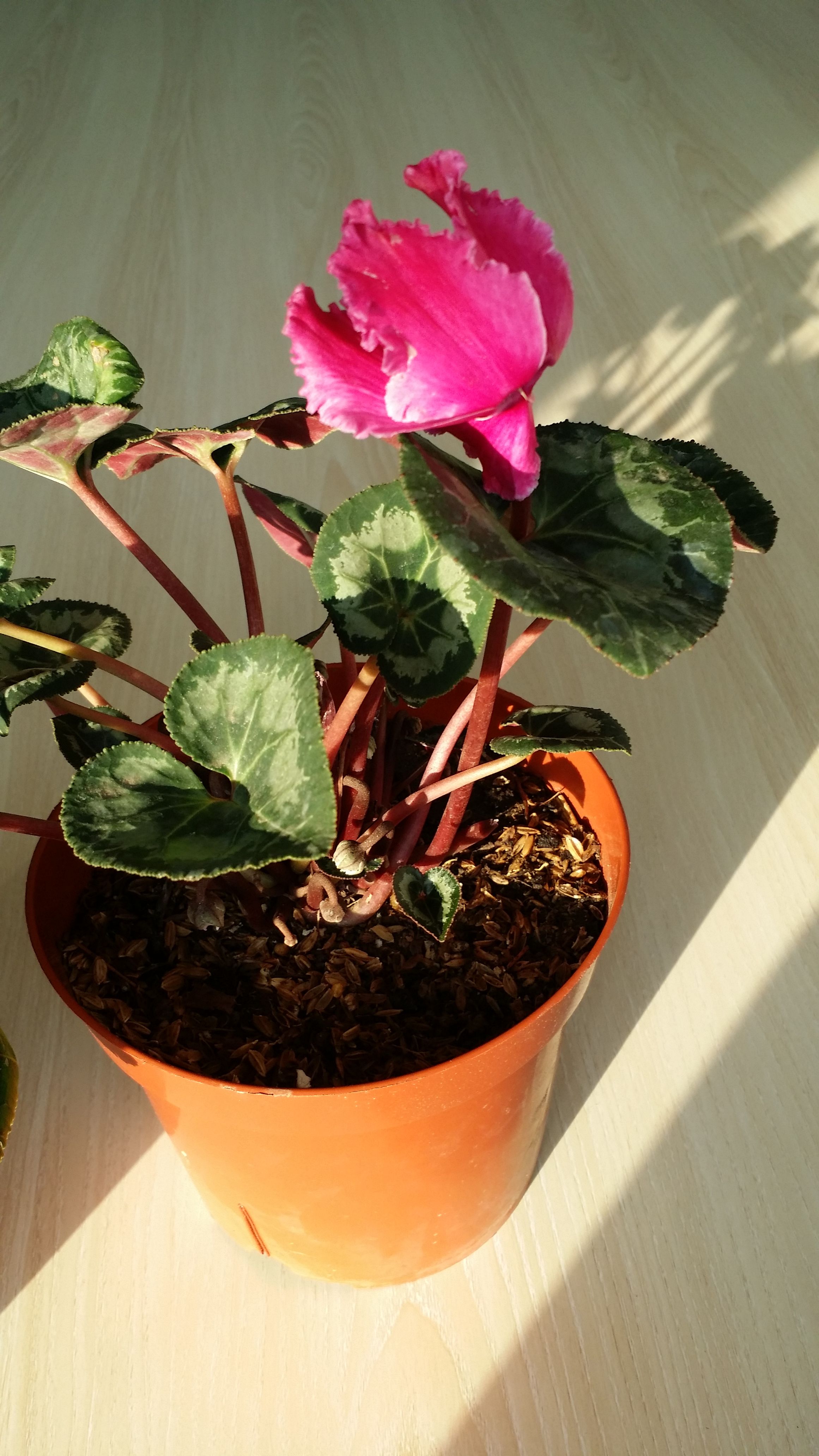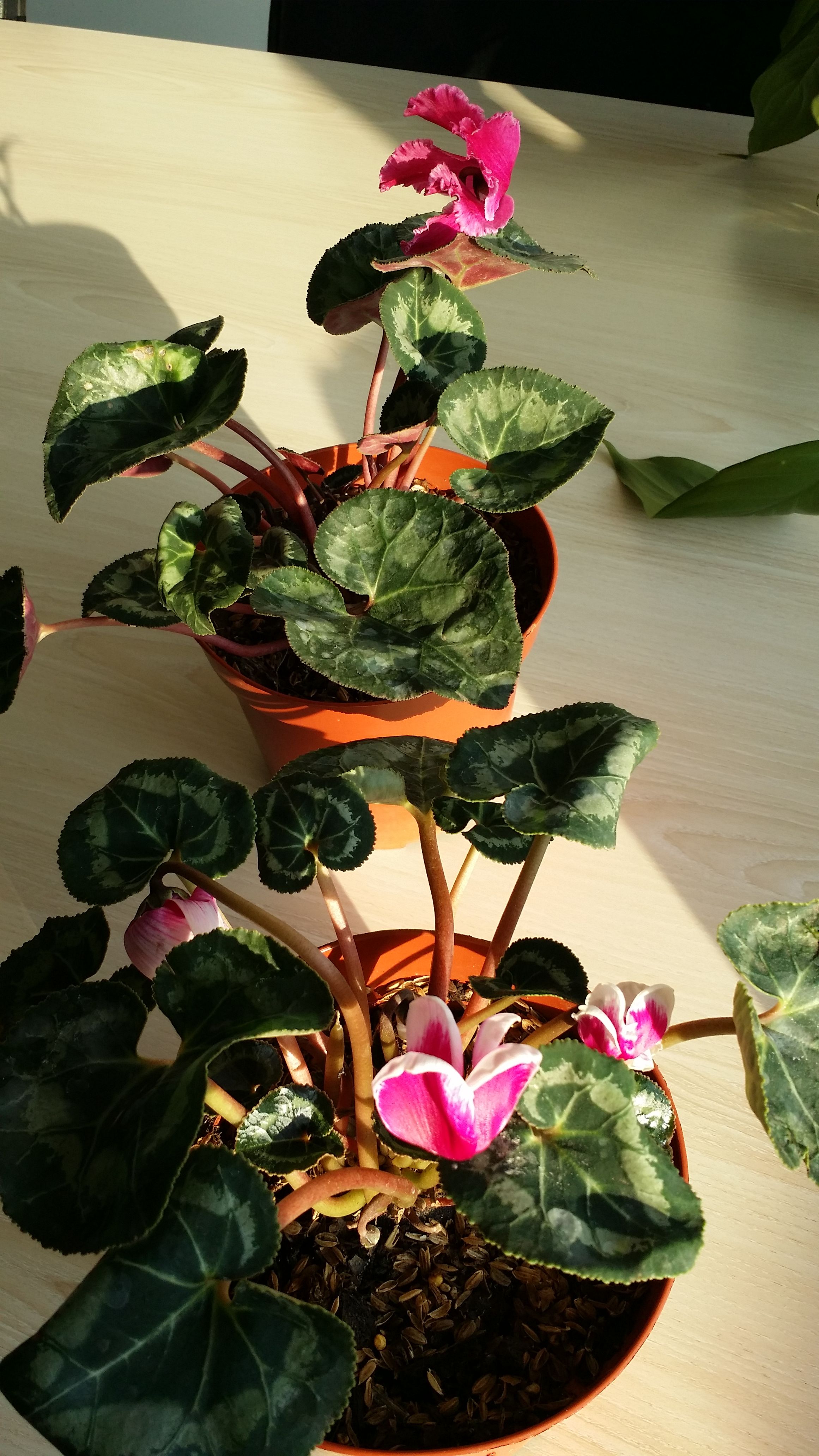 再来两盆今年最先买的,宿迁货,脱盆发来的,包装也不好,把折损的叶子和花去掉后所剩无几,所幸颜色还是对版的,养养一盆已经光荣牺牲了,以后网上买仙客来,一定要带盆的,切记切记!