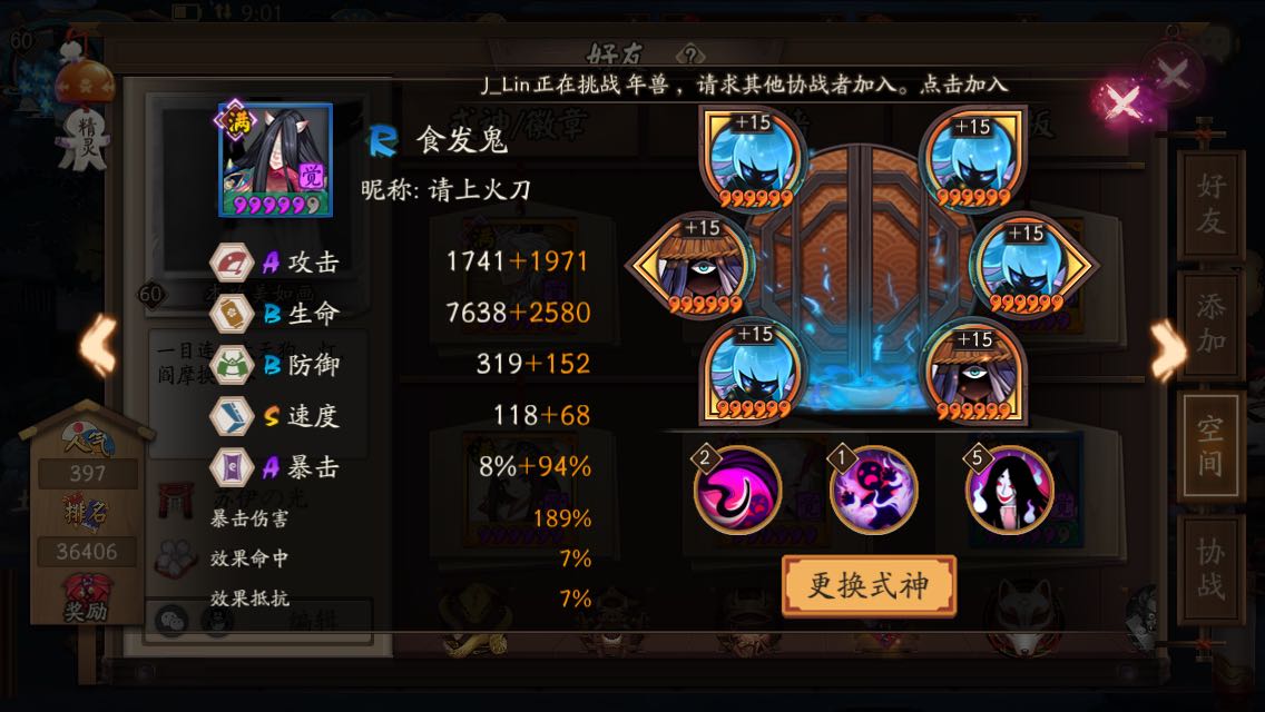东拼西凑,现在成了这样,缺一个全加攻击或爆伤的五号位破势……体力金币告罄,等有钱了再去赌魂