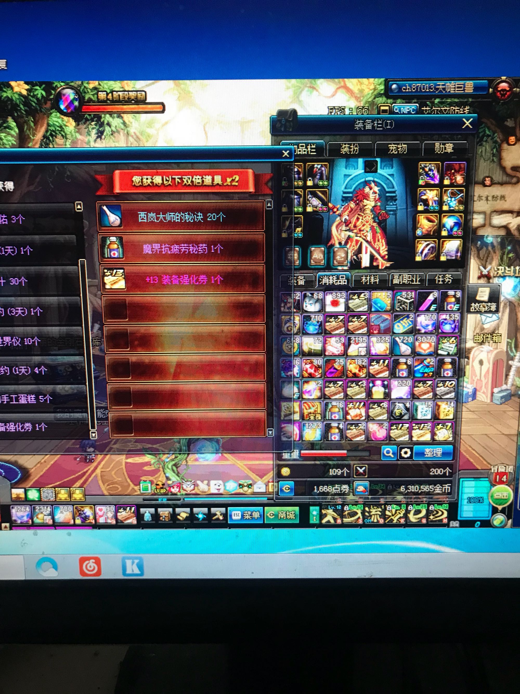 武器今天刚上的,耳环白11项链护肩红11其他的红10