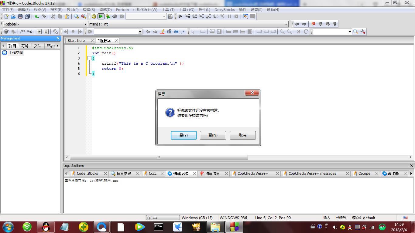写的程序在店点击运行时显示该文件没有被构建是什么意思?