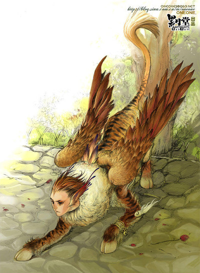 人面马身,有虎纹,生鸟翼,声音如榴。号称是替天帝看花园的神,但看起来充其量不过是只神兽而已。《山海经(西次三经)》有载。