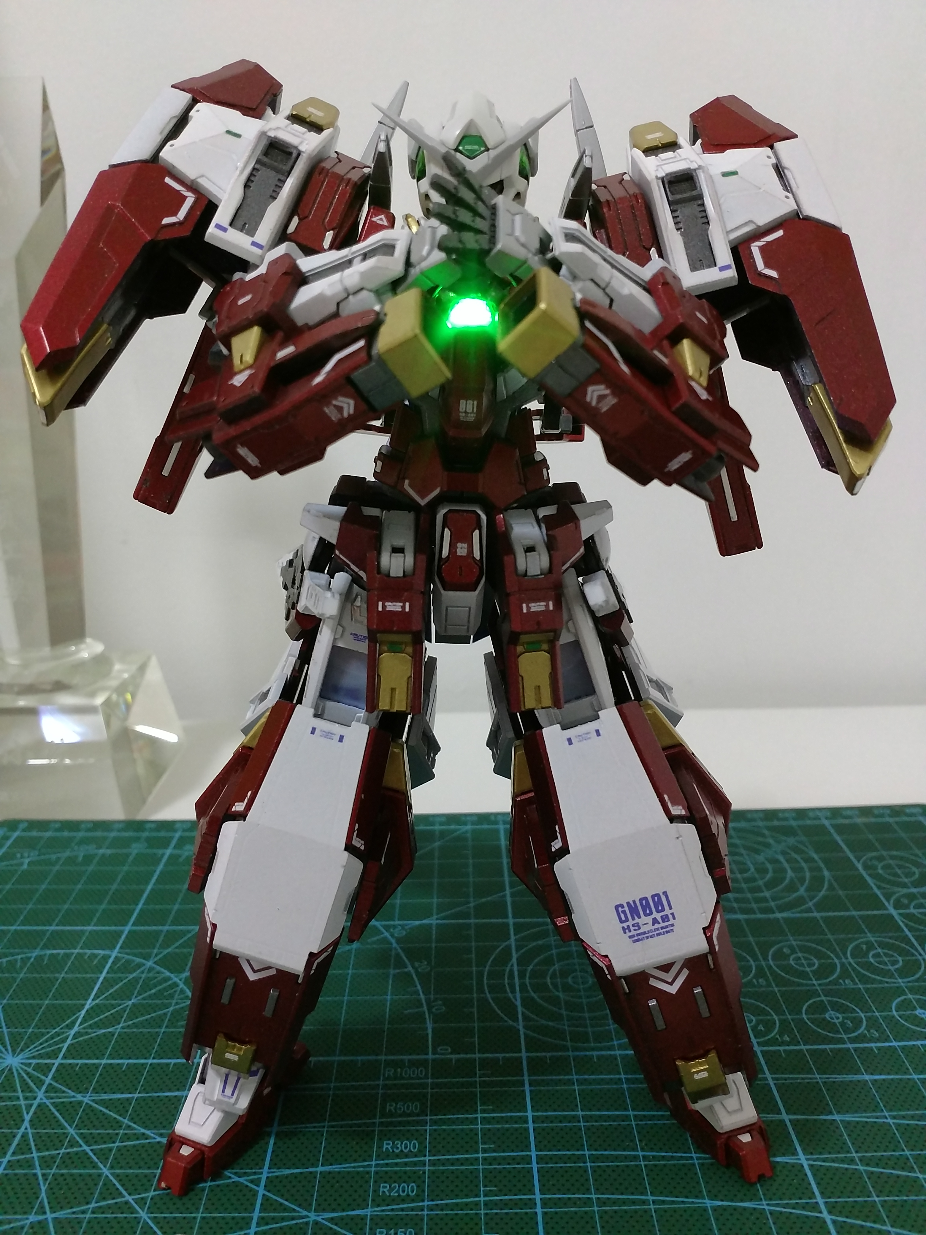最后一张不清楚,实际是图二裁下来的绿色圆片塞进了图一的胸前,让透出来的光更绿!