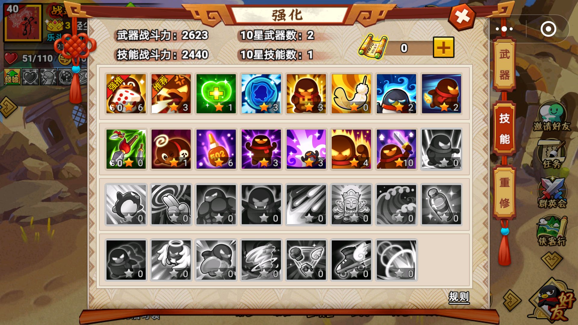 十大神技能:武器,皮草,均衡,快人,大力,装死,铁骨,嗜血,强健,微步