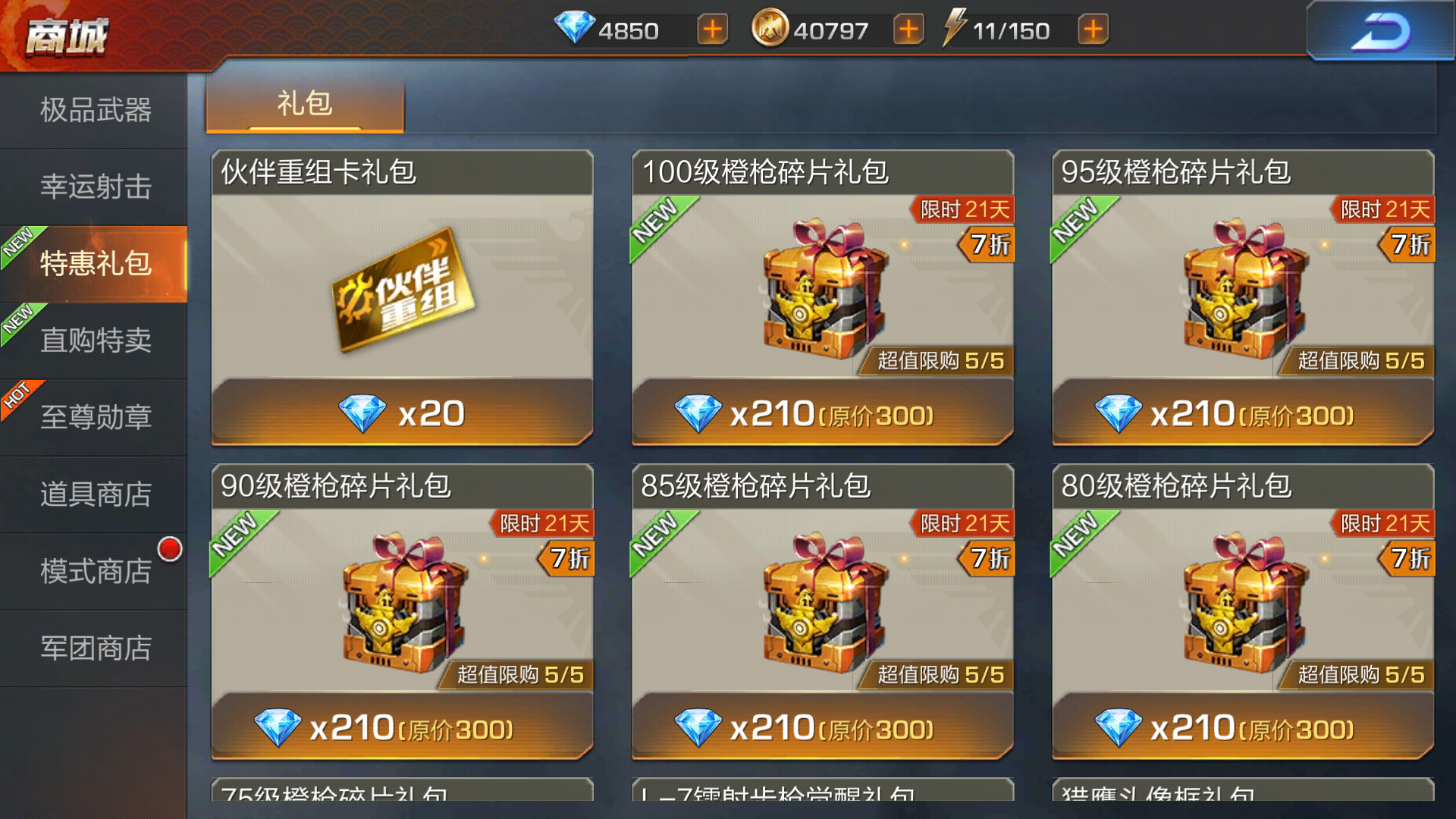 我刚好75级就一个礼包是黄金M4A1,问下楼主大大后面的礼包是什么,有没有我想要的,那我要升级