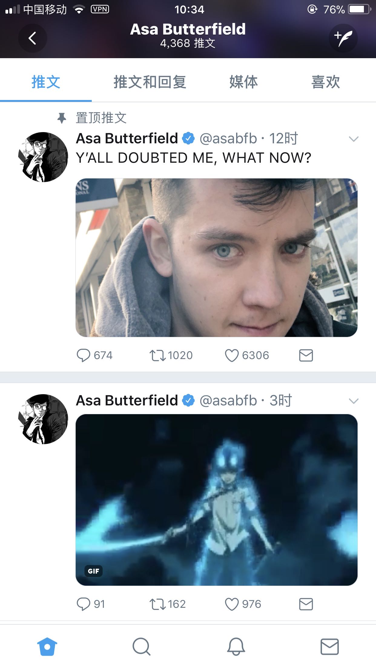 AsaButterfield推特更新