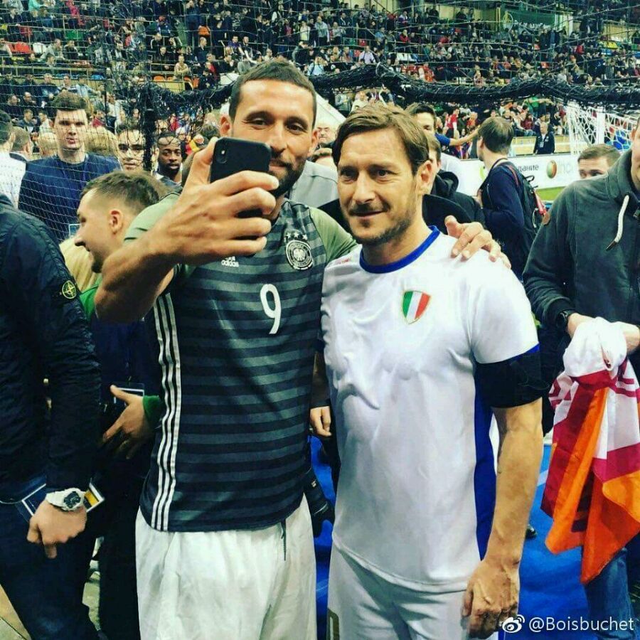 莫斯科举办传奇杯,托蒂冒雪参赛,穿上了久违的意大利战袍