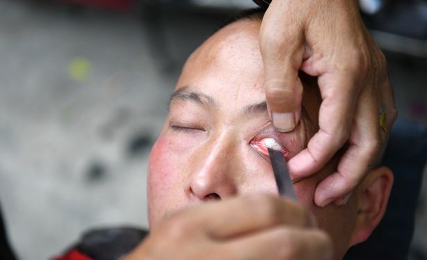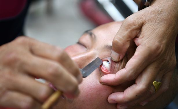 62岁中国理发师用剃刀清洁眼球40多年零失误 外国人惊叹不已