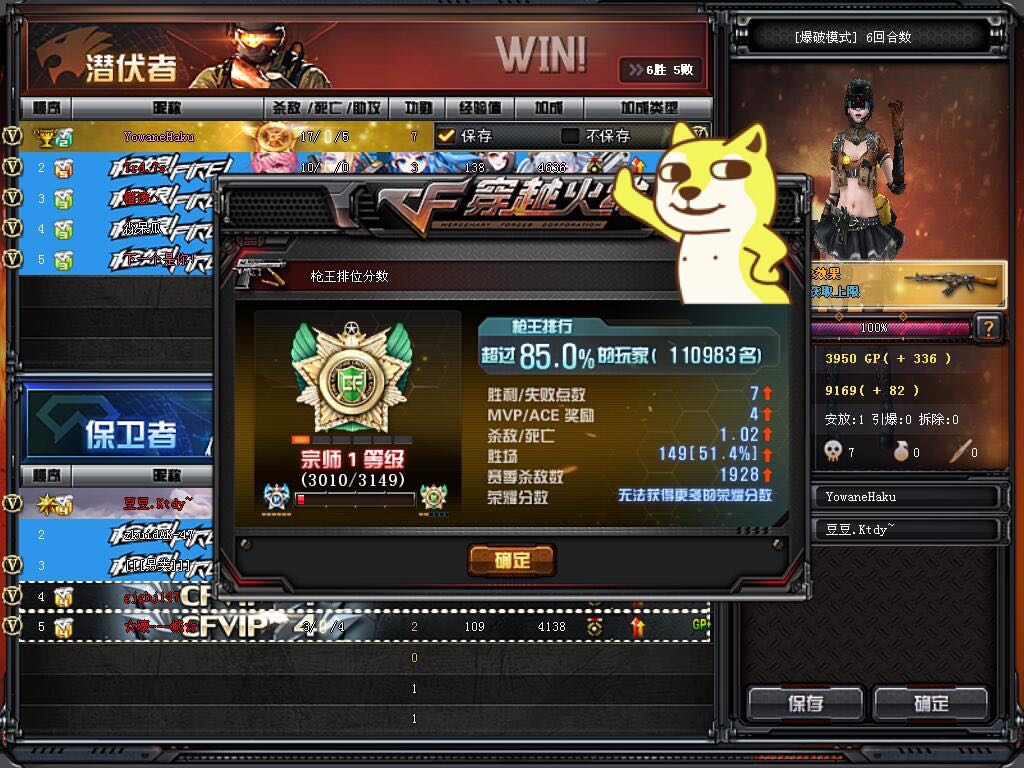 打了6小时终于从大师6打上宗师,**。也不枉费往cf里充了几千块了