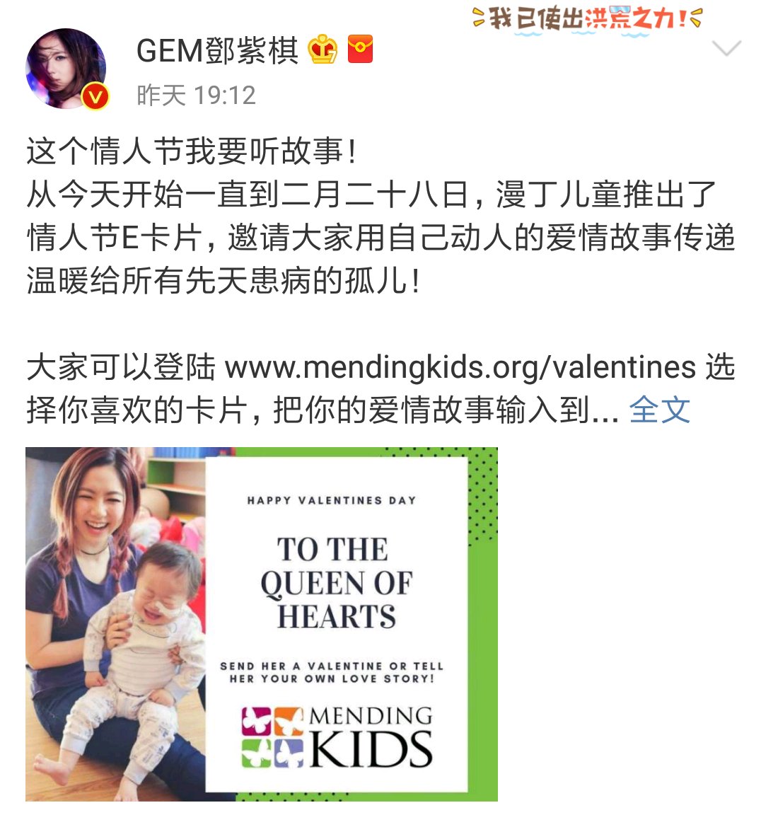 漫丁儿童邀请大家用自己动人的爱情故事传递温暖给所有先天患病的孤儿