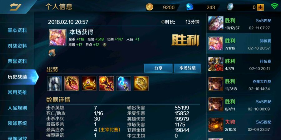 下面介绍技能。由于被动太废柴,最后点。前期没啥用。主升1,辅升2,有大点大。对线用1消耗,不能过份冲动。如果对面消耗太厉害,用2给自己回复。基本不用回家。只要1对1,我认为贞德真的不用惧怕谁。贞德专克爱因斯坦。跟我对线的爱因斯坦都非常郁闷。炮塔刚立好就爆了。