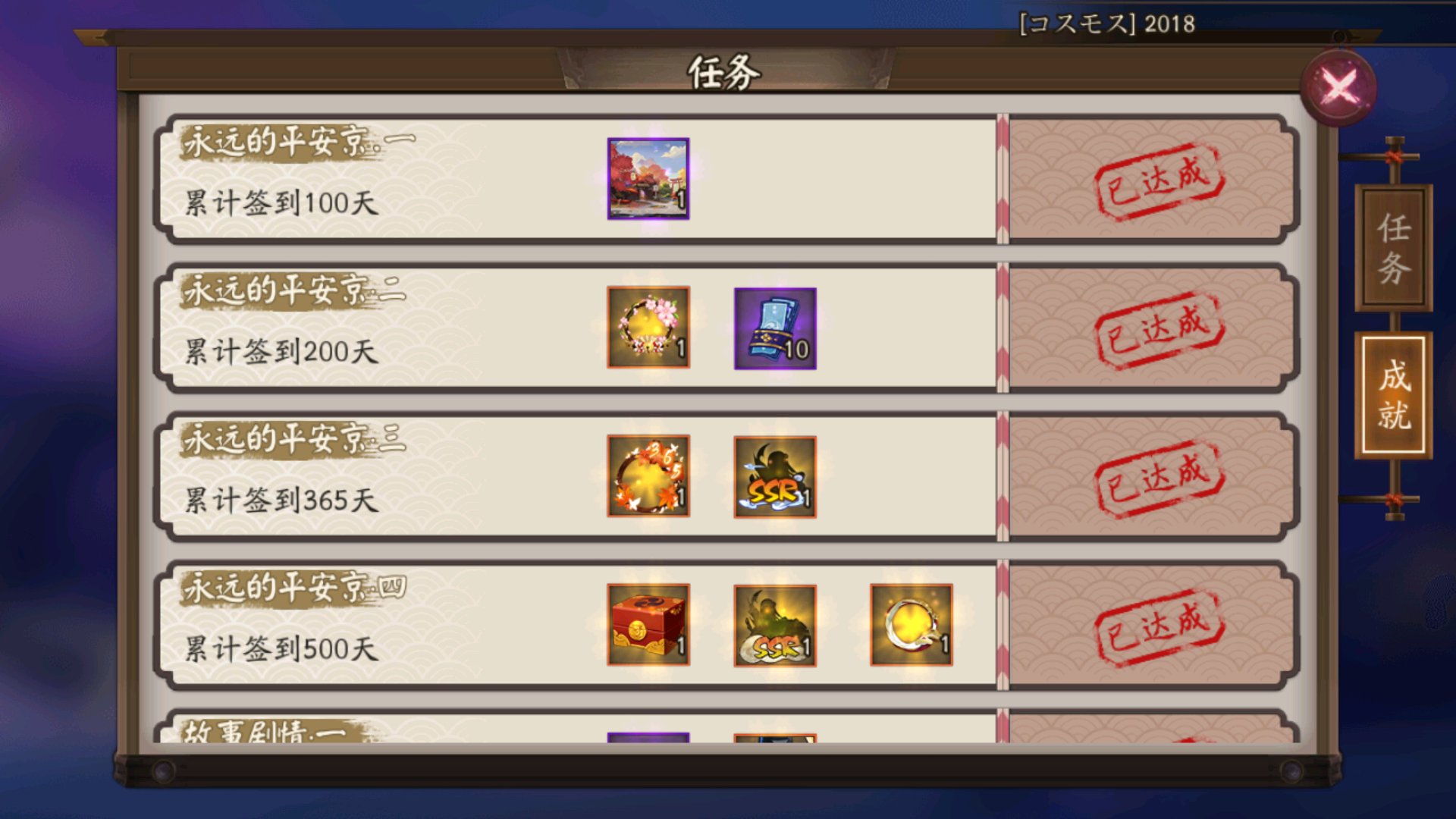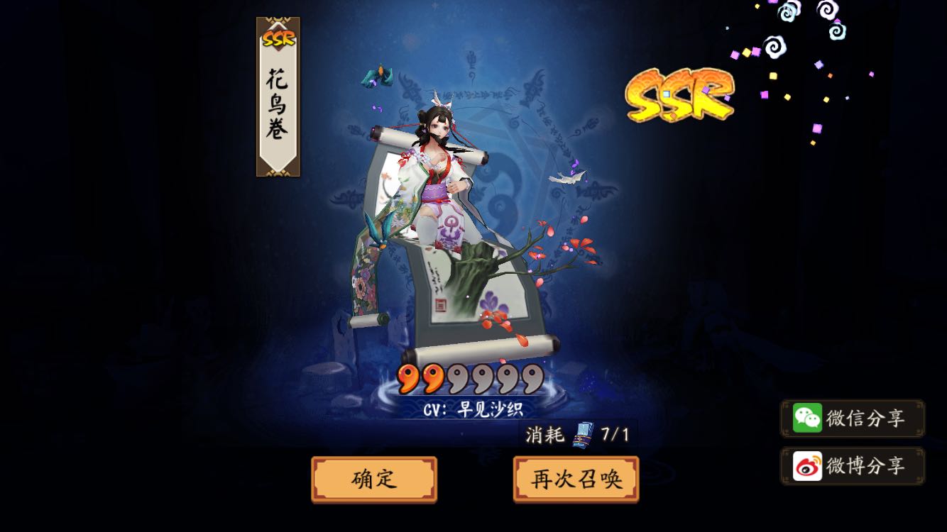 ssr:大天狗,花鸟,荒川之主,酒吞。