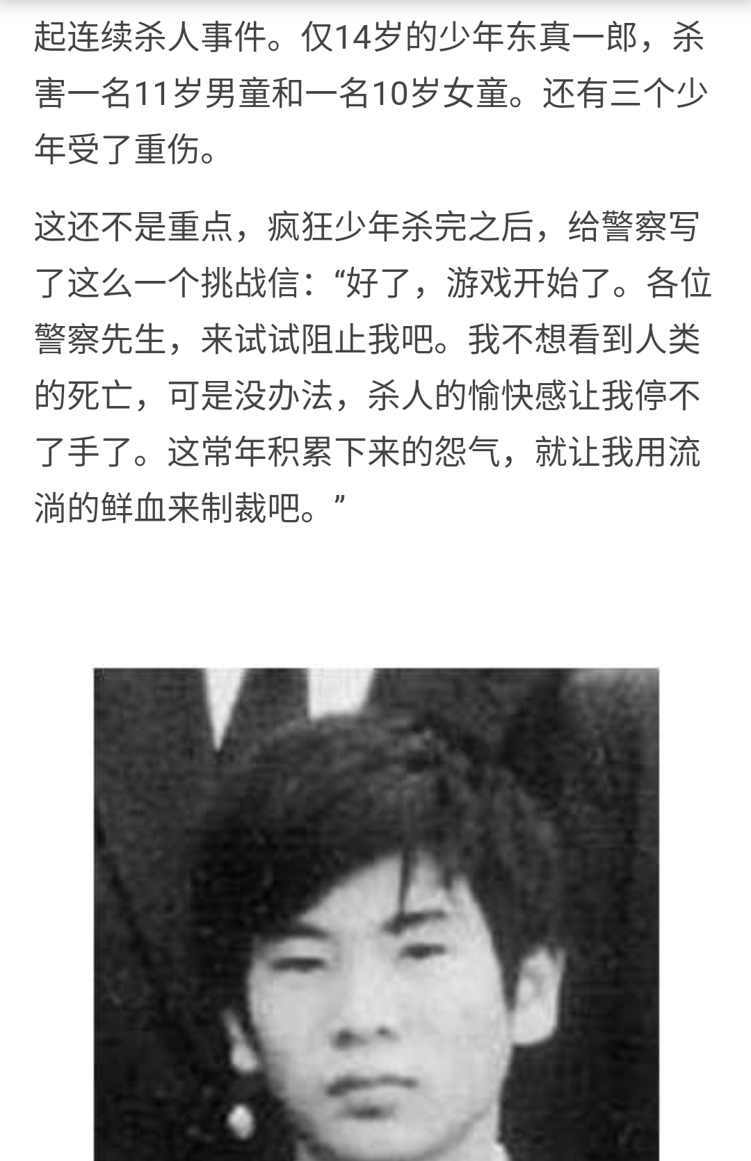 其实是当时的报道是按“少年A”来写的,但是在网上一直有关于他的名字的争论。最后一家报刊在他成年后公布了真名“东真一郎”。