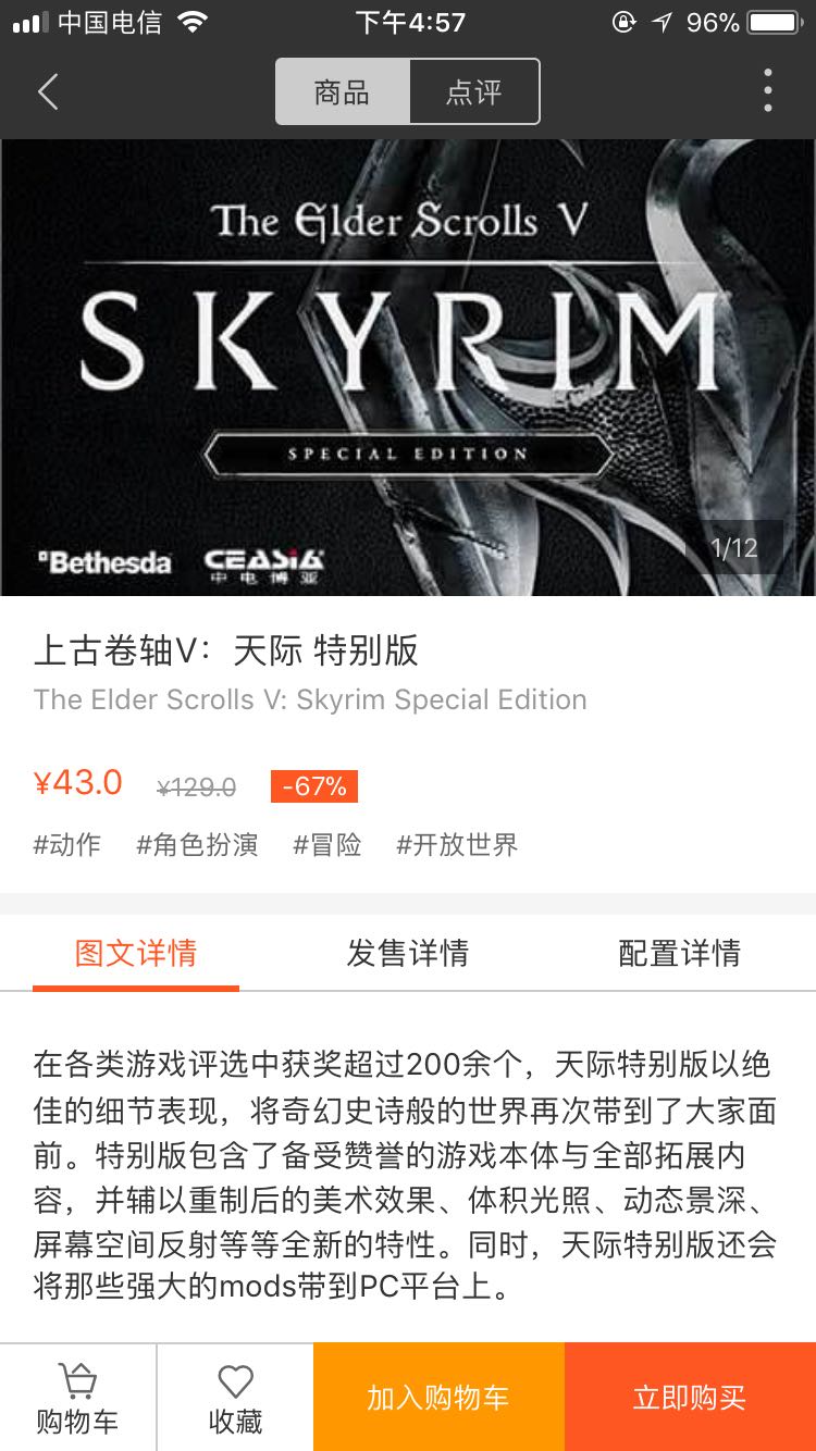 我显示老滚43,但打开后又变原价129