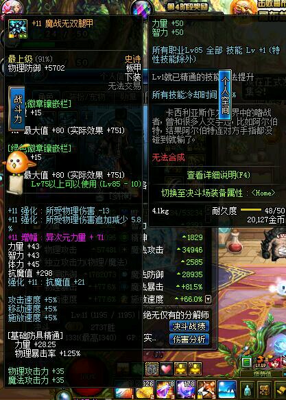 说下暗帝 武器增幅12 板甲 三技能宝珠 4件增幅11 首饰20暗 三神器 打的125思维 上下45魔法攻击力