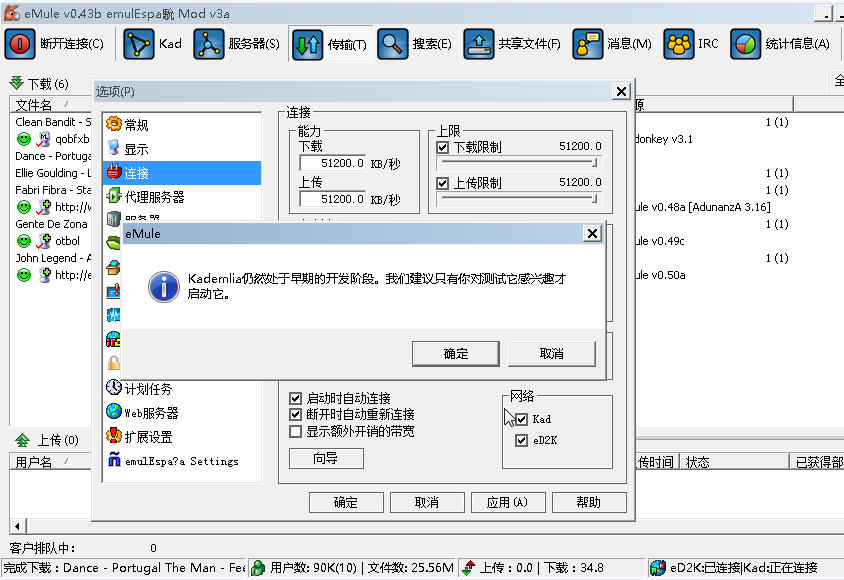 高ID过年无聊试用0.43旧内核mod不能连进kad网