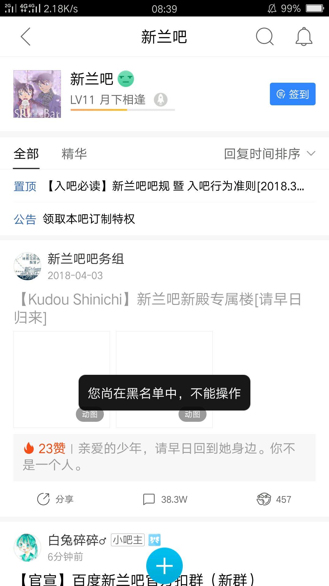 快兰吧十一级,违法吧规,列入黑名单。