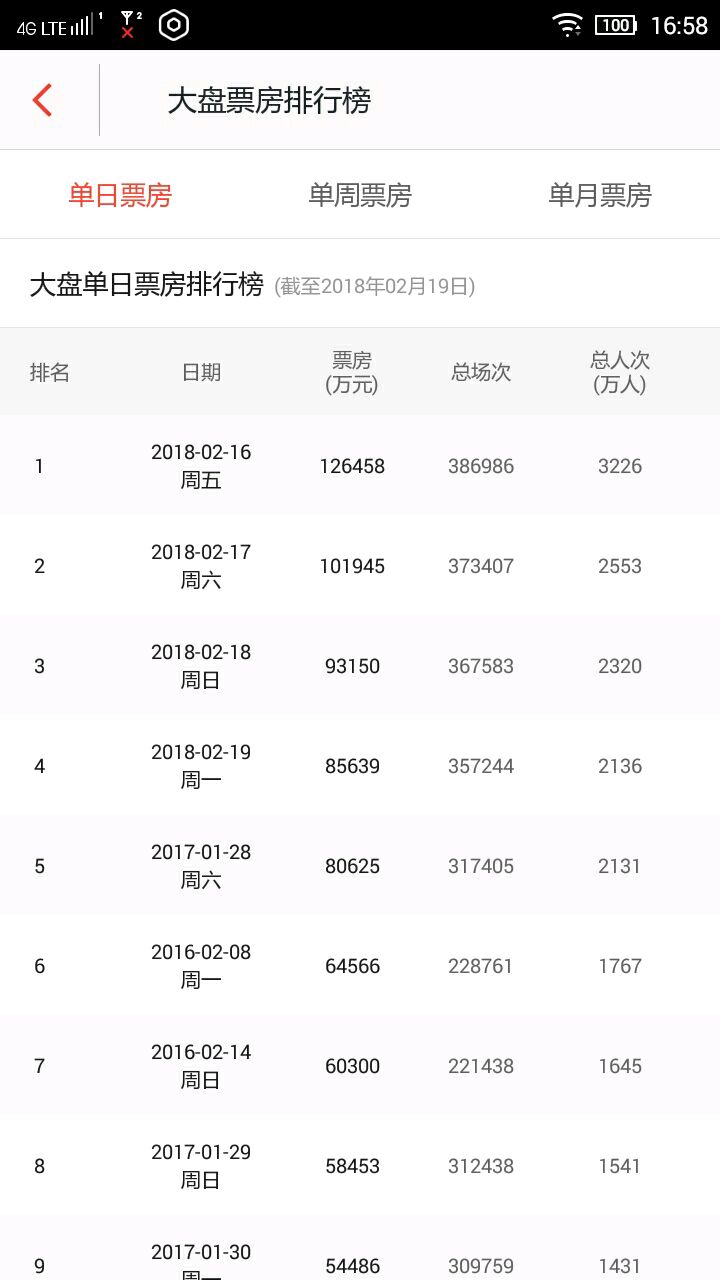 接2楼,自大年初一以来,排在前六位的电影永远是
