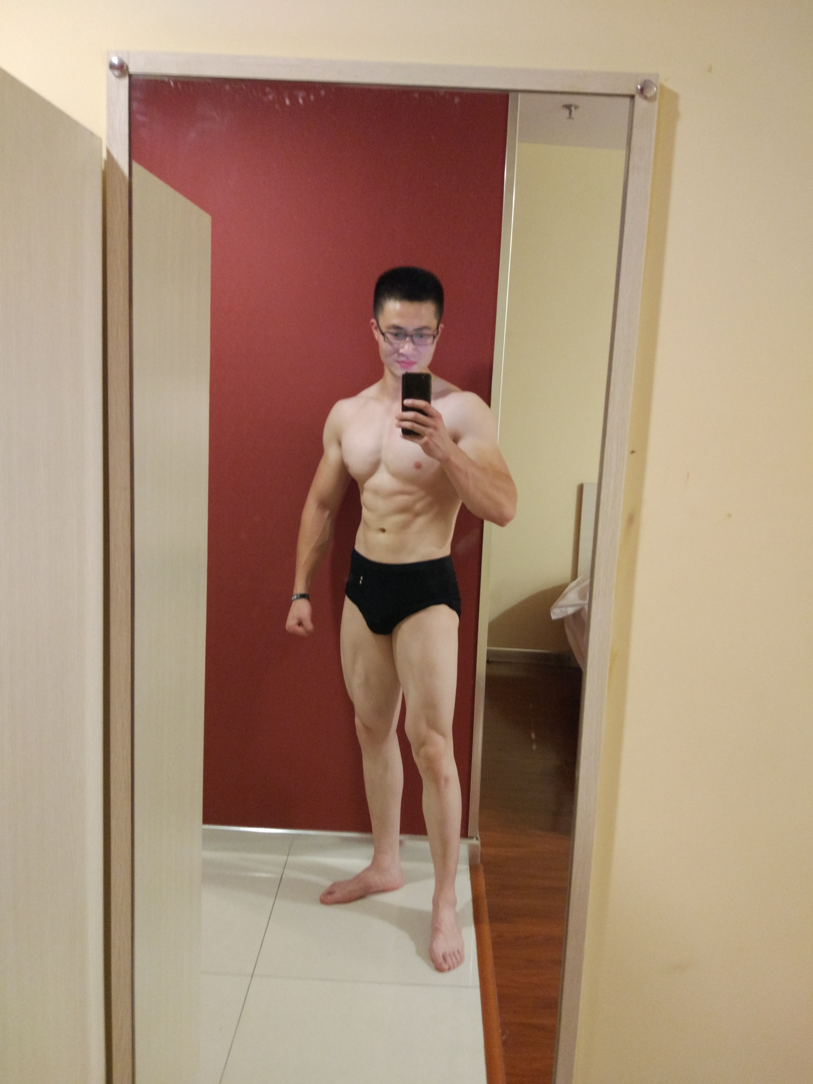 感觉好像退步了,体重倒没啥变化,前三张现在的,后三张以前的。