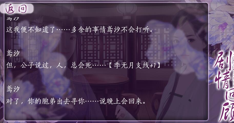 还想再听一遍--摸过别人的眉心--感动--你刚才叫我什么?--你不去追上季无月?(支线+1)