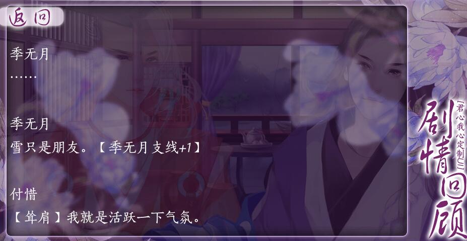 另外提一下无月线最好控制一下其他人都好感和支线,能不加的尽量避一避不然很容易串线(be)